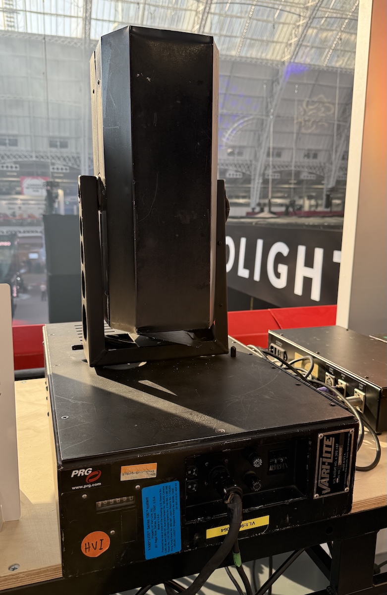 There had been moving lights before – big theatrical fixtures bolted into huge, slow-moving yokes – but this is really where the modern age of moving lights began: the Vari*Lite VL1. Amusingly, it was created by Showco, then best known as a sound company!