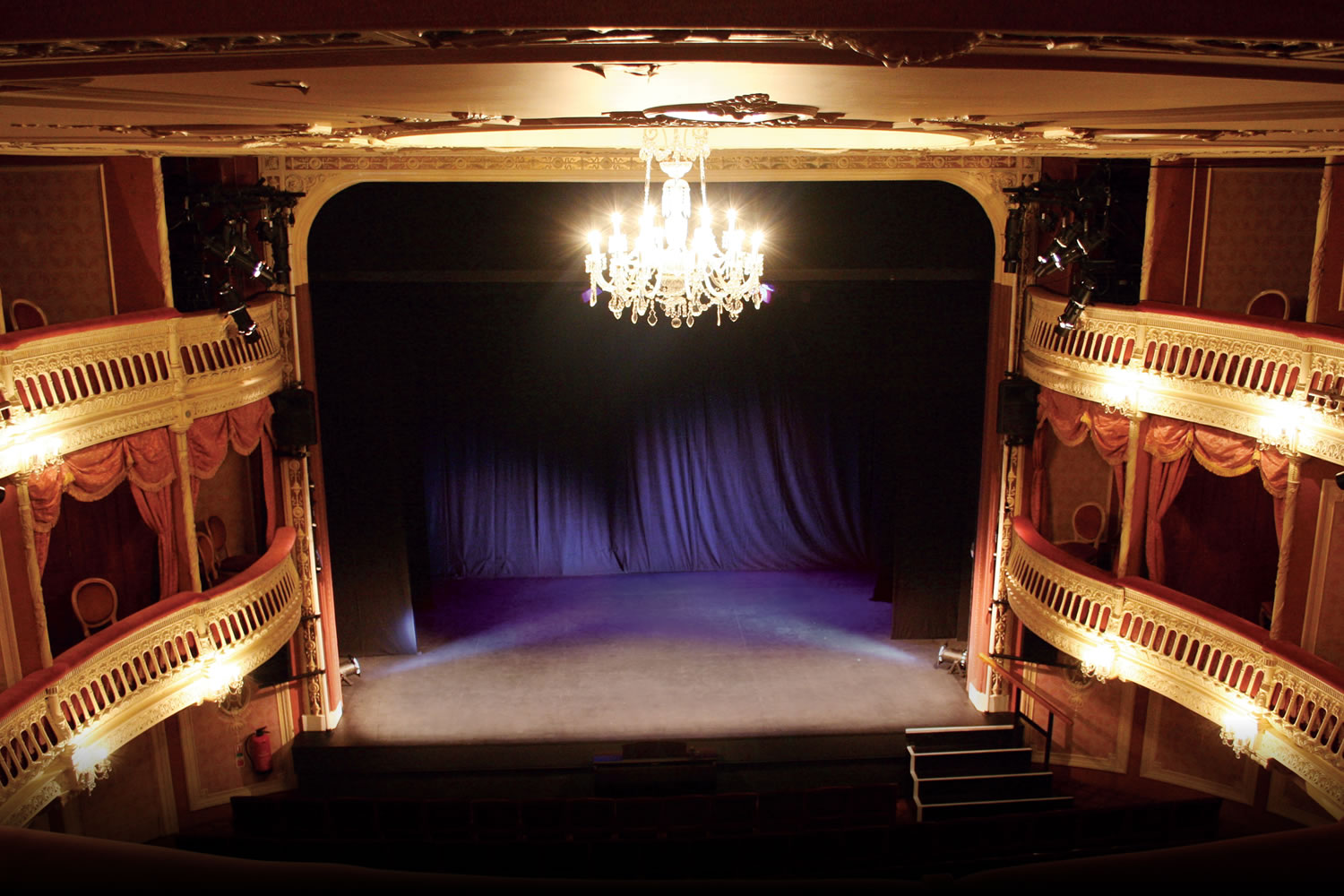 Electrics: Strand 60 way LP in stalls box SL. Dimmers - 60 x 2.5kW; 3 presets. Socket type - 15A BESA. Total capacity available - 147kW. Special effects supply - 10A on 3 phases. No follow spots. No footlights.
