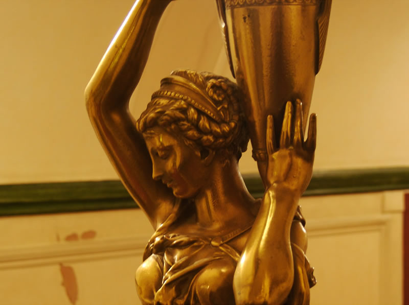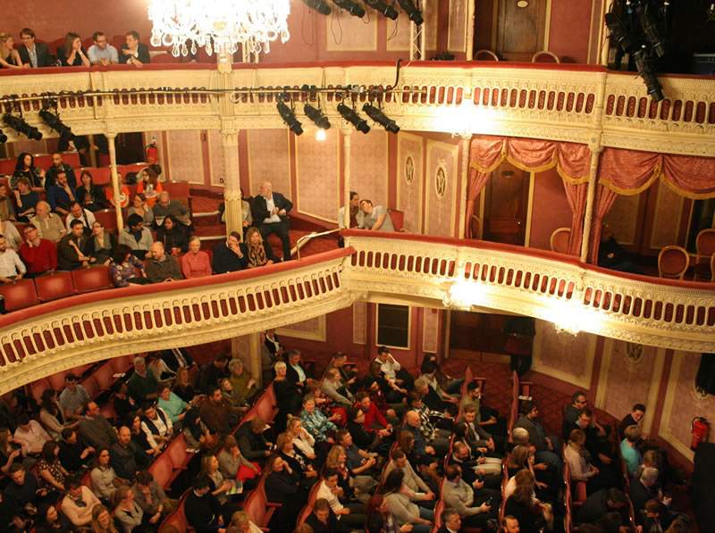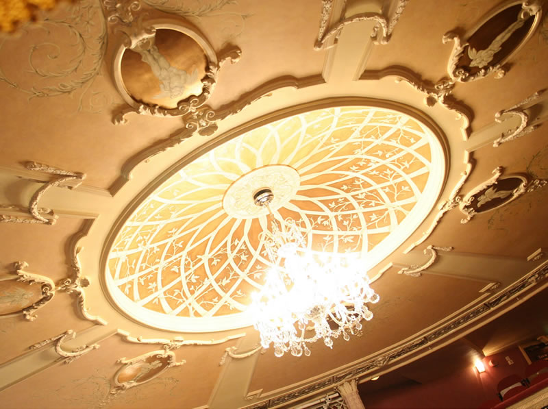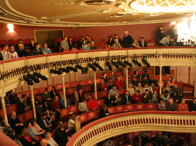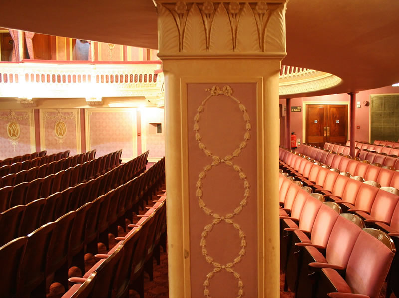 In the middle of the building it was originally intended to build a small concert hall constructed as a square galleried room. It was not until the carcase of the building was finished that they decided to convert this part of it into a theatre. Designed by Thomas Verity, it was to be entirely underground and even the upper circle had to be reached by descending stairs.