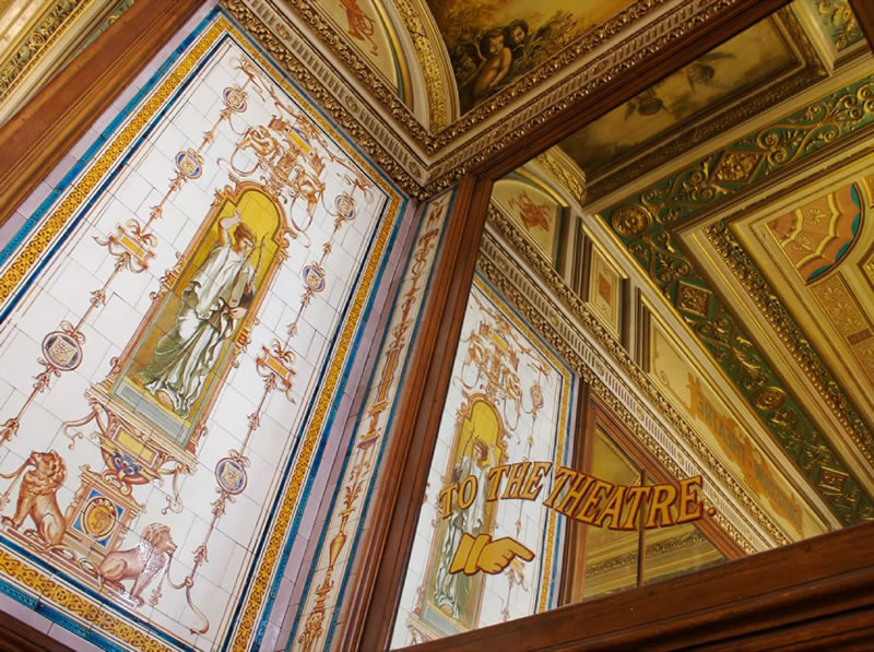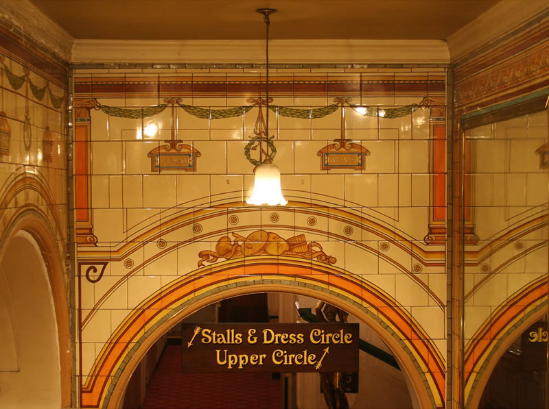 A further remodelling and redecoration took place in 1902-3, when the theatre was closed for some seven months. Happily this little theatre, consisting of only Stalls, Dress Circle and Upper Circle, still manages today to retain much of its 1884 atmosphere and tile decoration. Only its main entrance and vestibule are on ground level in Piccadilly Circus. The frontage is the facade of the Criterion Restaurant.